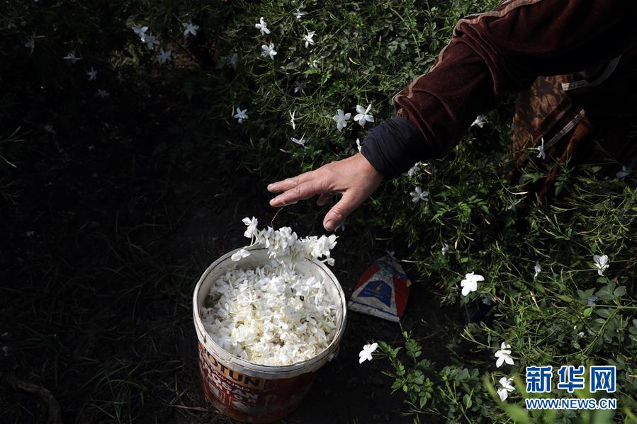8月29日,一名村民在埃及西部省采摘茉莉花。 每年6月到11月是埃及茉莉花的收获季。收获的茉莉花将运送到工厂,用来制作香氛和精油。 新华社发(艾哈迈德·戈马 摄)
