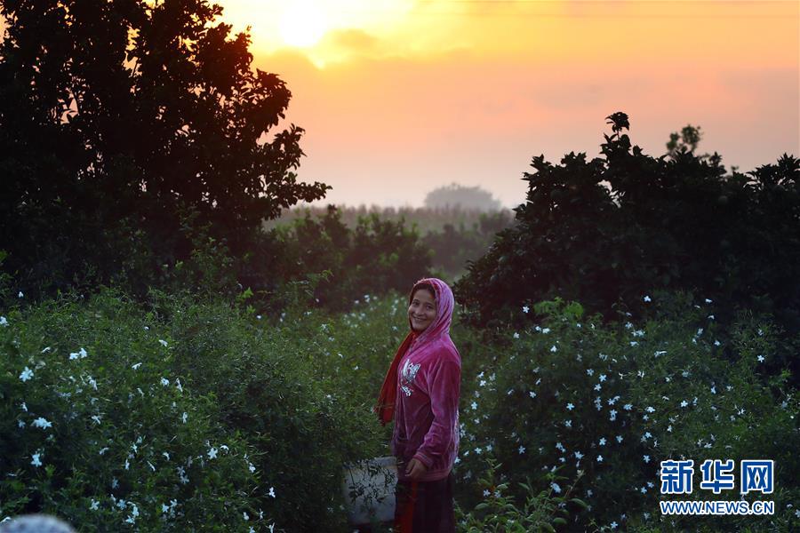8月29日,一名妇女在埃及西部省采摘茉莉花。 每年6月到11月是埃及茉莉花的收获季。收获的茉莉花将运送到工厂,用来制作香氛和精油。 新华社发(艾哈迈德·戈马 摄)