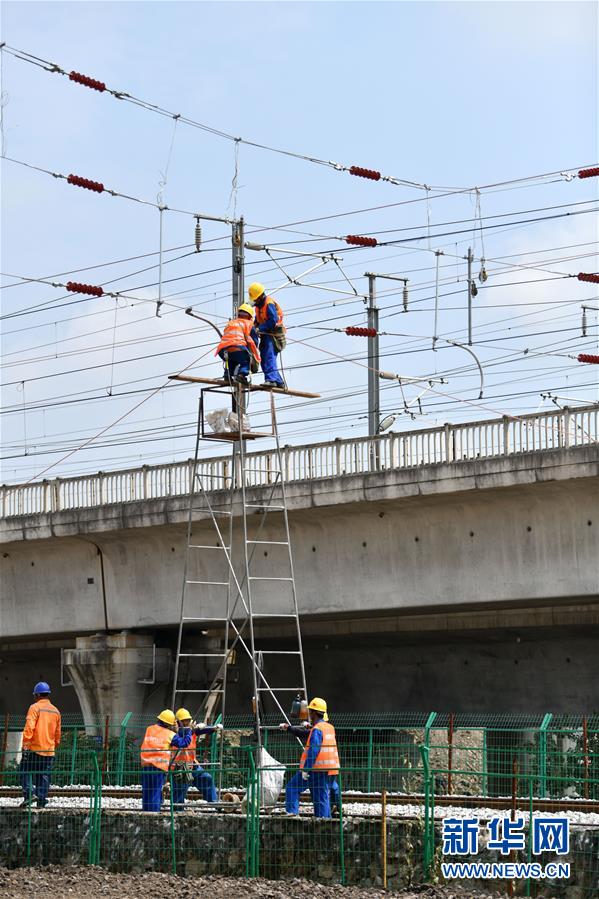8月31日,中铁四局电气化公司施工人员在双墩集站站改施工现场作业。 近日,由中铁四局电气化公司负责施工的合安外绕线双墩集站站改施工紧张进行,施工人员不畏高温,坚守岗位,确保重点工程建设进度。 新华社记者刘军喜摄