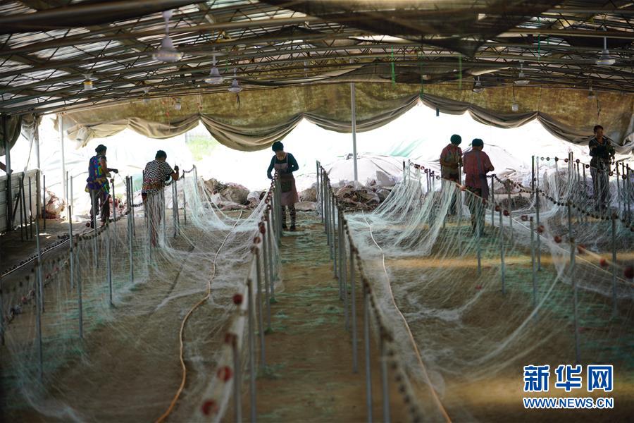 8月31日,河北省滦南县程庄镇东胡家坡村一个网具加工厂的工人在加工网具。 黄渤海区伏季休渔即将结束,河北省滦南县多家网具加工企业开足马力加紧生产,满足渔民对网具的需求。 新华社记者 牟宇 摄
