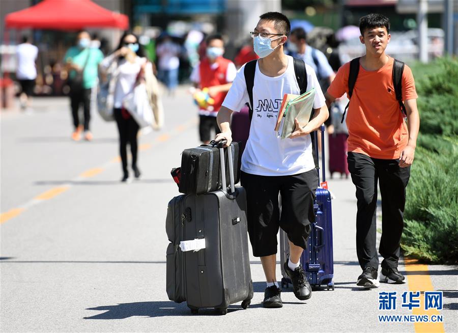 9月1日,2020级本科新生(前)行走在北京大学校园内。 当日,北京大学迎来2020级本科新生报到。 新华社记者 任超 摄