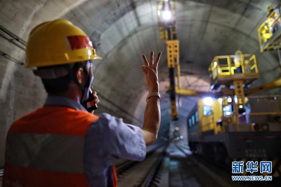 9月3日,贵阳高铁工务段职工在贵广高铁榕江至从江段内进行维修检查工作。 贵阳高铁工务段管内高速铁路桥隧比超过80%,并且大部分隧道穿越喀斯特地貌不良地质,在集中降雨作用下,易诱发隧道漏水、边坡溜坍等水害。2020年汛期以来的很多夜晚,贵阳高铁工务段利用超声波检测车、三平台作业车等高科技手段对各类隧道病害隐患进行整治,大幅度提高了工作效率,确保了高铁安全。截至目前,该段已经完成排查隧道454座,发现问题并整治132个。 新华社记者 刘续 摄