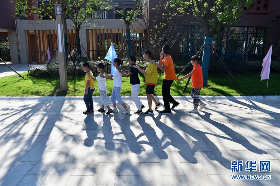 9月3日,学生在合肥特殊教育中心北校区内熟悉校园环境。