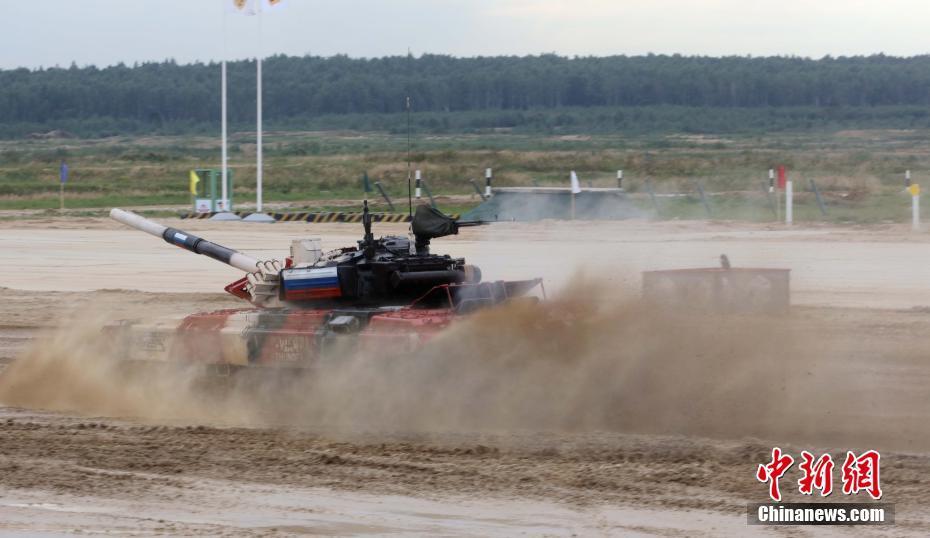 当地时间9月5日,俄罗斯队坦克正在进行“坦克两项”比赛。“坦克两项”是“国际军事比赛”的最重要项目之一。当天“国际军事比赛-2020”在莫斯科郊外闭幕。 中新社记者 王修君 摄