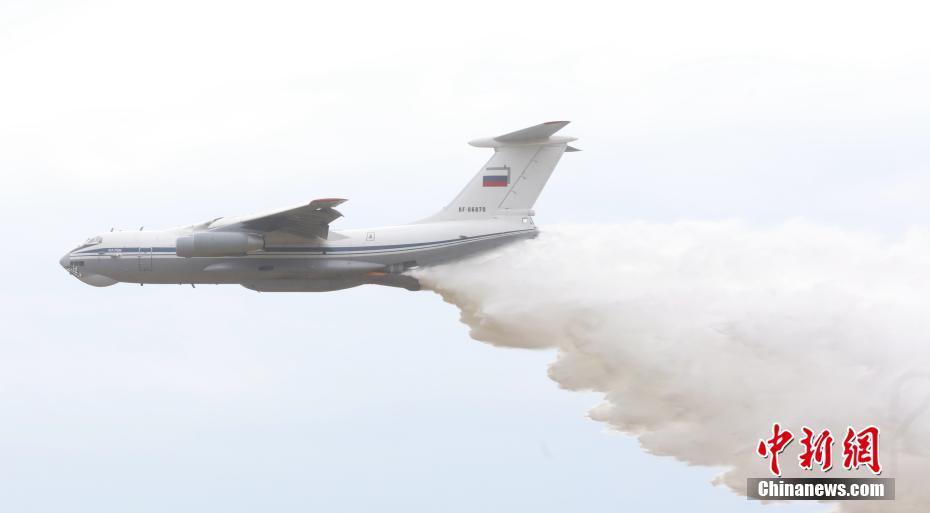 当地时间9月5日,一架飞机飞过比赛场地。当天“国际军事比赛-2020”在莫斯科郊外闭幕。 中新社记者 王修君 摄