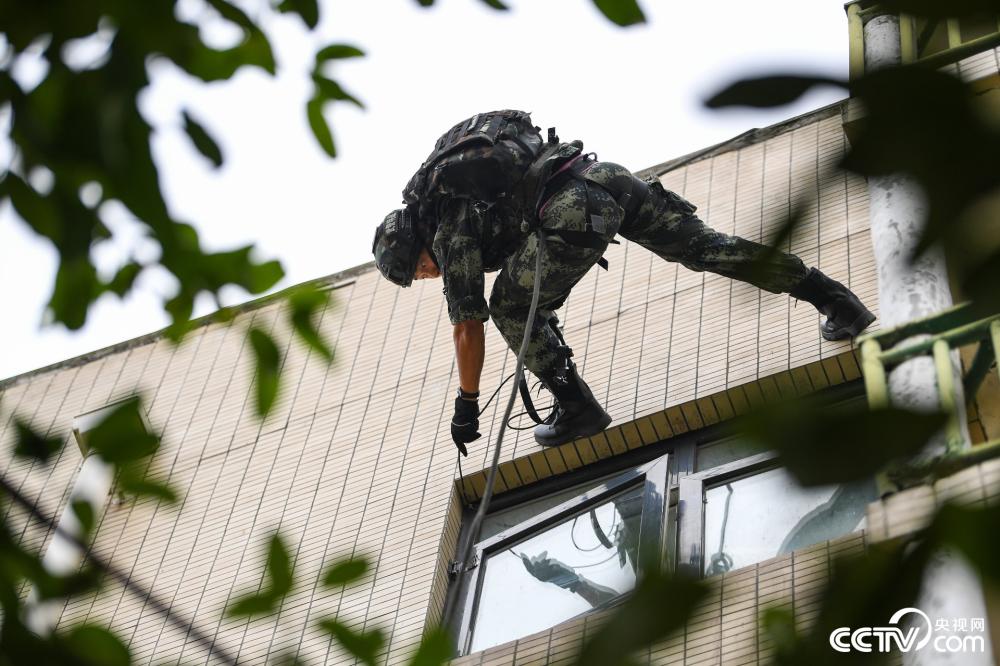 图为参赛队员正在进行攀登侦察。(王肸 李哲)