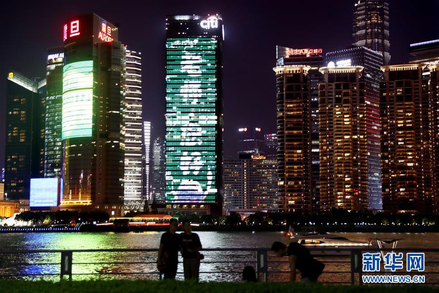 9月8日晚,上海“外滩之窗”大屏点亮“为教师亮灯”活动主题灯光。 新华社记者 刘颖 摄