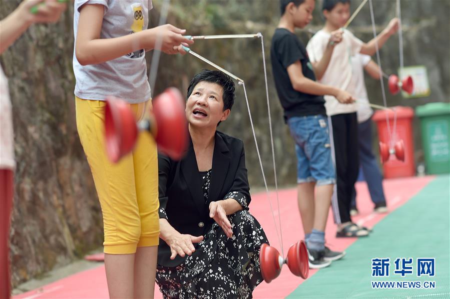 9月10日,在诸暨市特殊教育学校,蒋春凌向一名学生讲解抖空竹的要领。 55岁的蒋春凌是浙江省诸暨市特殊教育学校教师,从事特殊教育已经34年。今年8月,蒋春凌被授予全国“最美教师”荣誉称号,被誉为西施故里“最美特教教师”。 蒋春凌说:“特殊教育是为那些可爱的生命打开心灵的一扇窗,撑起人生的一片天。回首34年特教经历,我感到无比充实和欣慰,此生无悔!” 新华社记者 韩传号 摄