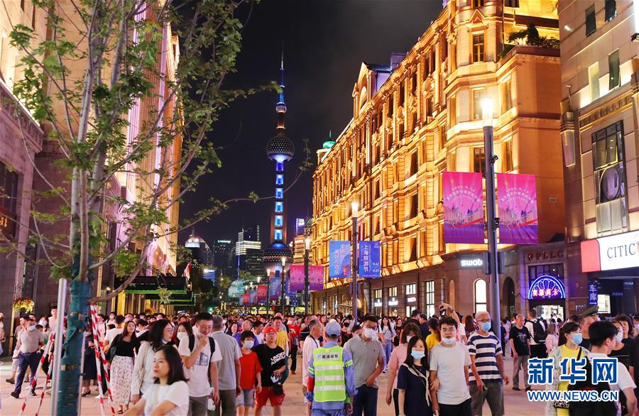9月12日,市民、游客行走在南京路步行街东拓段新开通的街道上。 当晚,备受瞩目的“中华商业第一街”上海南京路步行街东拓段正式亮灯“开街”。东拓段西起河南中路,东至中山东一路,全长495米。由此,南京路“牵手”外滩,游客可通过南京路步行街直达外滩。 南京路步行街是上海开埠后最早建立的一条商业街。1999年南京路步行街经过改造正式开街,享有“中华商业第一街”美誉。2018年,南京路步行街入选全国首批11条高品位步行街。开街20年后,南京路步行街于2019年迎来东拓工程改造。 新华社记者 方喆 摄