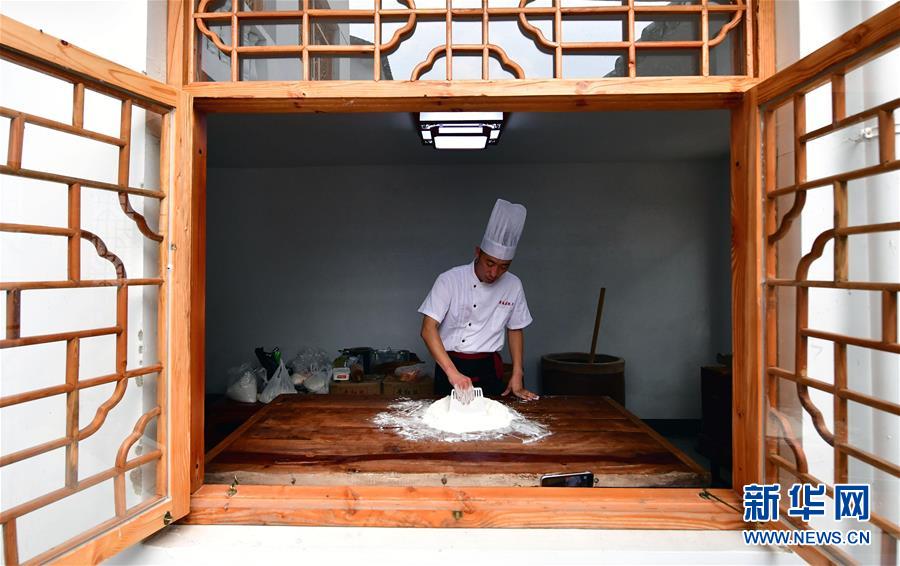 9月13日,在河南省商丘市夏邑县太平镇聂陈楼村,张旭用麦芽糖浆和面。 张旭是河南省商丘市夏邑县太平镇聂陈楼村人,31岁的他已是河南老字号月饼品牌景盛昌的掌门人。 景盛昌创始于清咸丰十年(1860年),其吊炉月饼皮层酥松、馅料充实,独具特色。2007年,张旭高中毕业后便跟随父亲学习月饼制作技艺。除用现代化手法制作月饼外,他坚持传承古法月饼制作技艺,使用传统工艺自制的麦芽糖浆和面,经过选料、拌馅、制皮、包馅、成型等十多道工序,以传统的吊炉果木烘焙工艺精心制作而成。 “古法月饼制作技艺是一笔宝贵的文化财富,我愿意把它好好传承下去,留住乡土美食记忆。”张旭说。 新华社记者 冯大鹏 摄