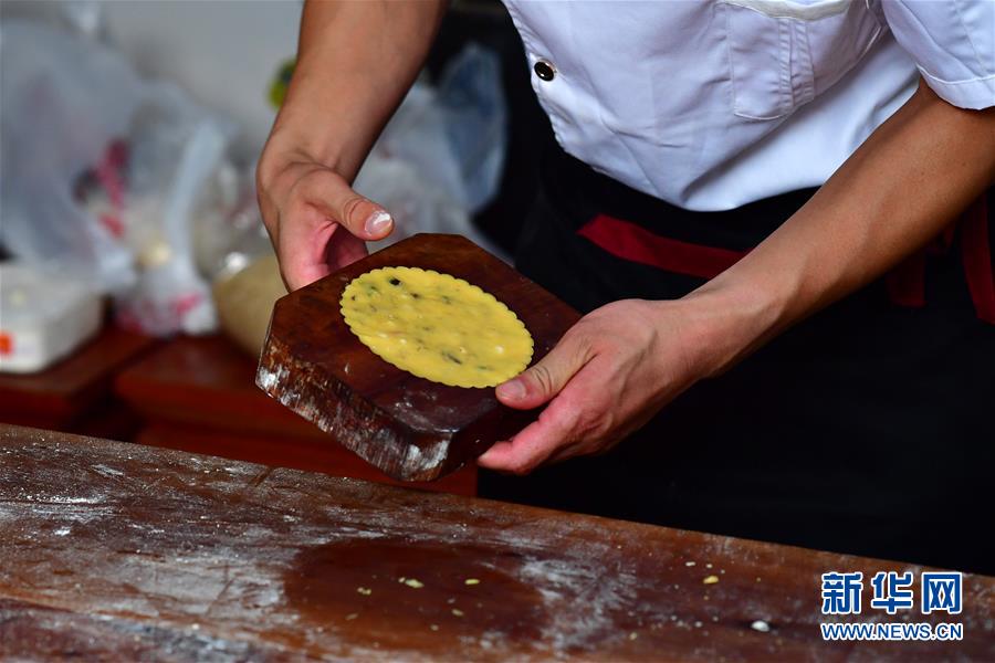 9月13日,在河南省商丘市夏邑县太平镇聂陈楼村,张旭在给月饼塑型。 张旭是河南省商丘市夏邑县太平镇聂陈楼村人,31岁的他已是河南老字号月饼品牌景盛昌的掌门人。 景盛昌创始于清咸丰十年(1860年),其吊炉月饼皮层酥松、馅料充实,独具特色。2007年,张旭高中毕业后便跟随父亲学习月饼制作技艺。除用现代化手法制作月饼外,他坚持传承古法月饼制作技艺,使用传统工艺自制的麦芽糖浆和面,经过选料、拌馅、制皮、包馅、成型等十多道工序,以传统的吊炉果木烘焙工艺精心制作而成。 “古法月饼制作技艺是一笔宝贵的文化财富,我愿意把它好好传承下去,留住乡土美食记忆。”张旭说。 新华社记者 冯大鹏 摄