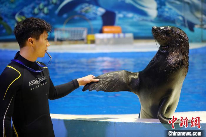 小海狮显得格外粘人,性格也相对比较温顺,在它们眼里,早把驯养员当做自己的亲人一样,走哪跟哪。 泱波 摄