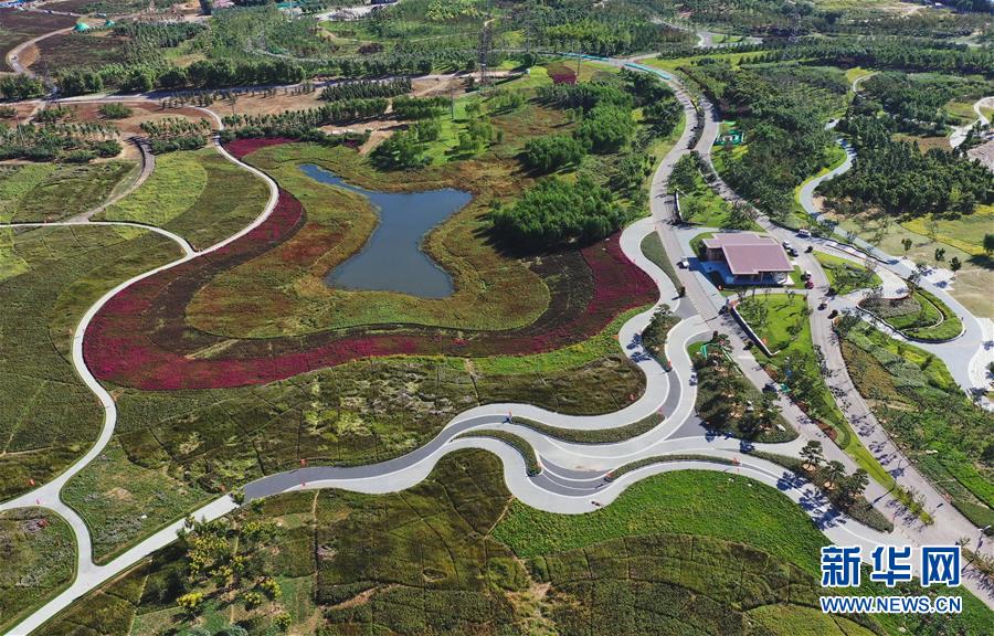 9月17日拍摄的唐山市开平区东湖区域花海景区(无人机照片)。 2018年以来,河北省唐山市开平区为根治东湖区域百年老矿开滦马家沟矿煤炭开采区的恶劣生态环境,先后清理“散乱污”企业72家,无名场院327家,着力打造“城市后花园”,取得良好效果。目前,该区域花海如画,吸引众多市民前来休闲观光,成为生态城市建设的新名片。 新华社记者 杨世尧 摄