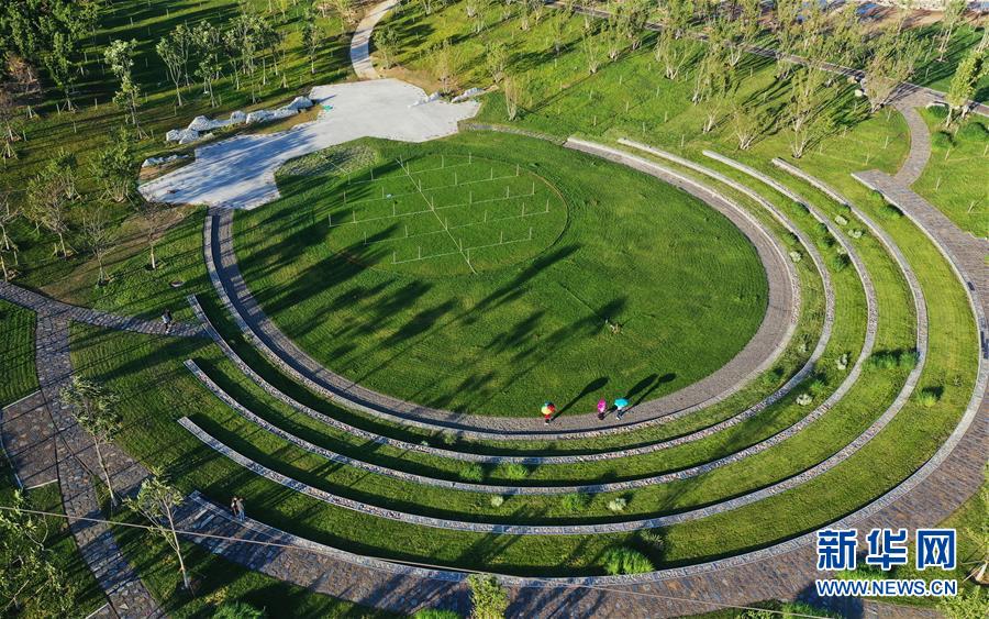 9月17日,游客在唐山市开平区东湖区域花海景区游览(无人机照片)。 2018年以来,河北省唐山市开平区为根治东湖区域百年老矿开滦马家沟矿煤炭开采区的恶劣生态环境,先后清理“散乱污”企业72家,无名场院327家,着力打造“城市后花园”,取得良好效果。目前,该区域花海如画,吸引众多市民前来休闲观光,成为生态城市建设的新名片。 新华社记者 杨世尧 摄