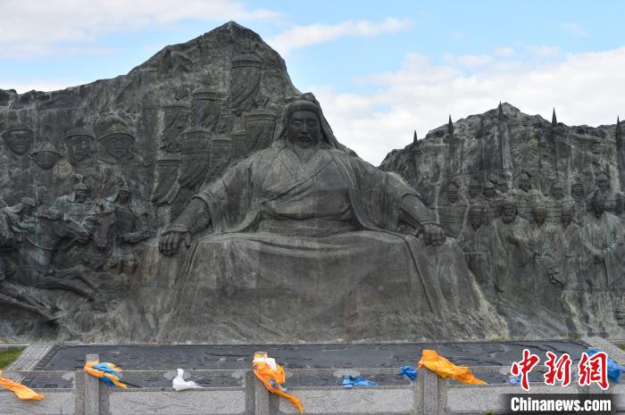 9月17日,元上都遗址内,高约6米的忽必烈铜雕像。 刘文华 摄