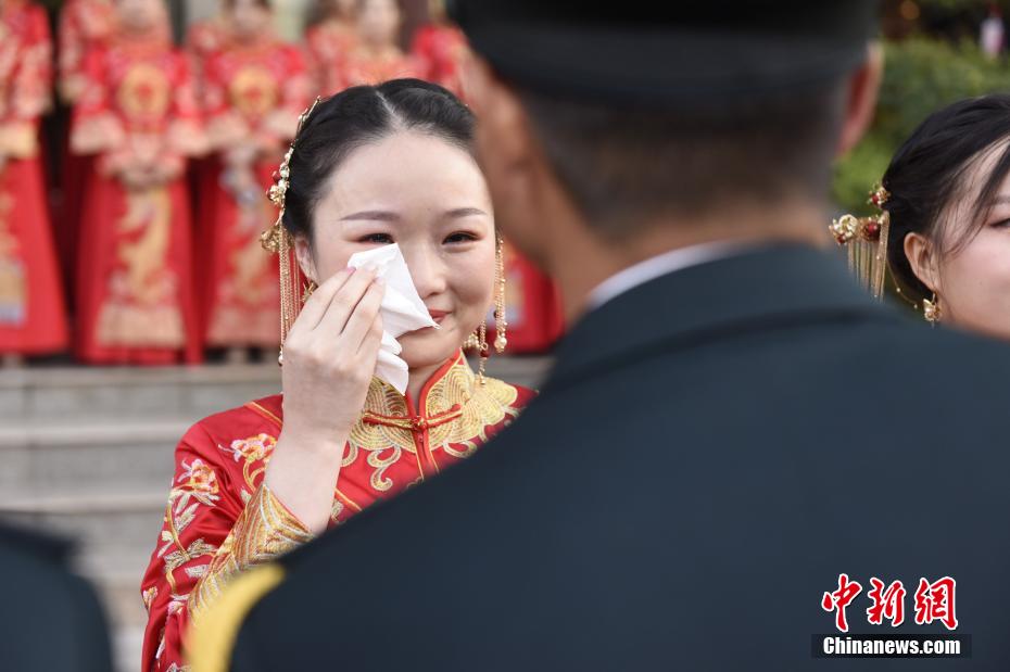 一位新娘在集体婚礼现场留下幸福的流泪。陈世锋 摄