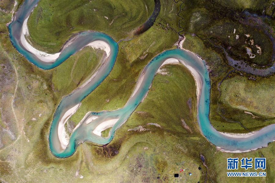 这是9月19日拍摄的西藏昌都市丁青县布托湖景色(无人机照片)。 布托湖位于西藏昌都市丁青县境内,由两个不同面积的高山湖泊组成。湖泊与蓝天、白云相互映衬,牦牛如黑珍珠般散落其间,景色迷人。 新华社记者 詹彦 摄