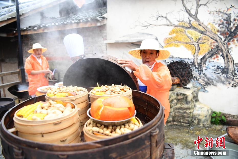 图为村民展示即将出笼的菜品。 陈超 摄