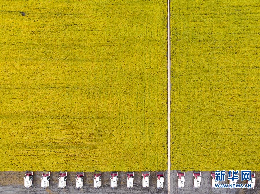 这是9月21日拍摄的黑龙江省富锦市万亩水稻公园里的金色稻田(无人机照片)。新华社发(张涛 摄)