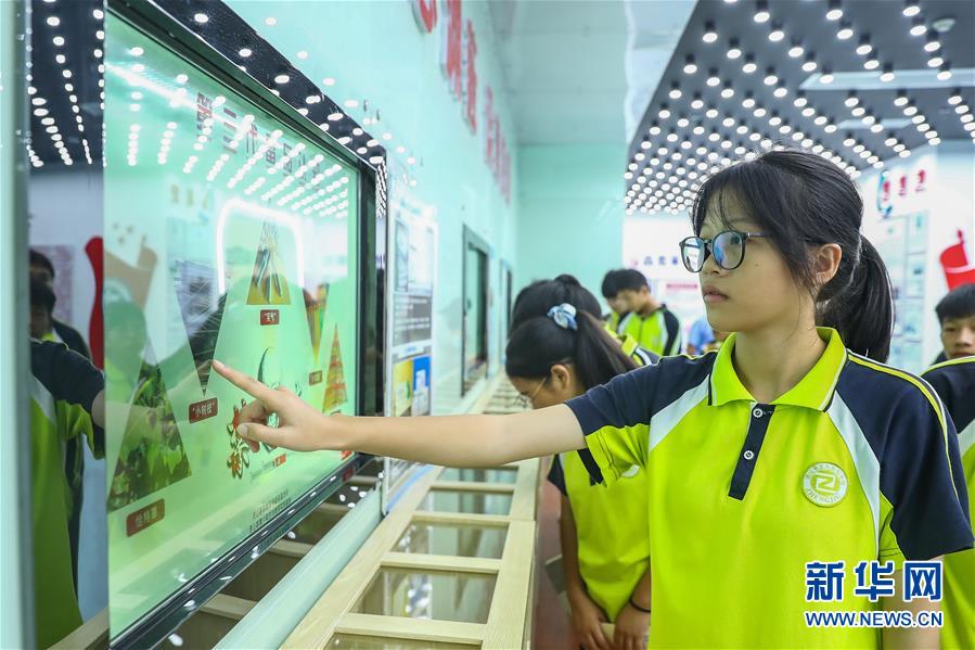 9月21日,在广西灵山县青少年法治教育实践基地,当地学生利用互动设备了解毒品的危害。