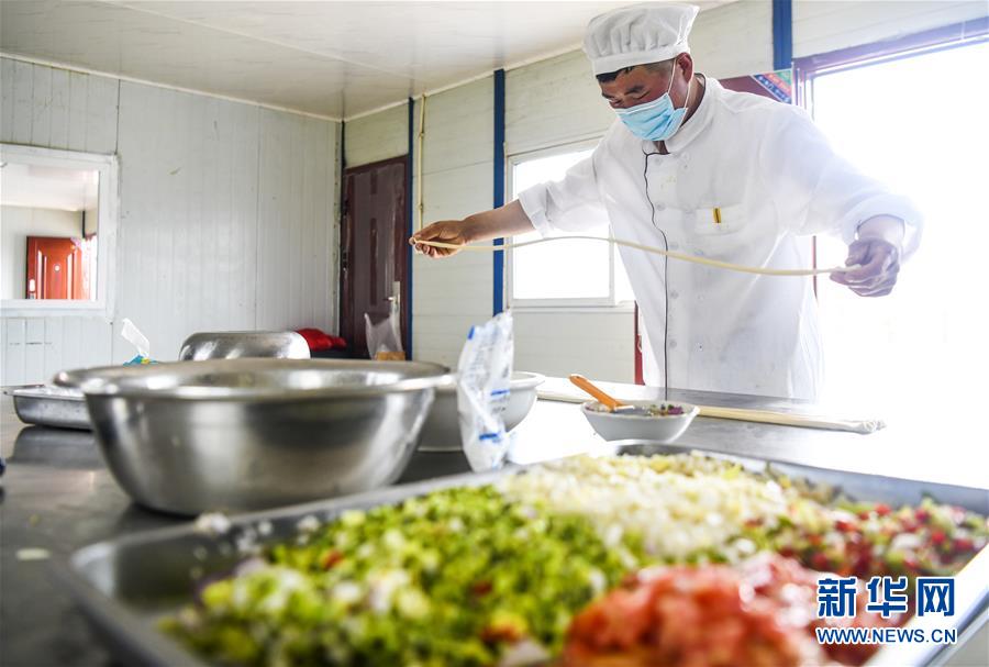 在新疆特克斯县也什克勒克村贫困户就业富民市场,餐厅经营者、贫困户阿合拜·比伙加在制作面食(6月29日摄)。 天山深处,许多牧民世世代代迁徙游牧,居无定所,生活贫困。随着当地脱贫攻坚事业的推进,集中放牧、现代化养殖、外出务工……牧民逐步实现多元化就业,天山深处的村庄迎来绚丽彩虹。 新华社记者 王菲 摄