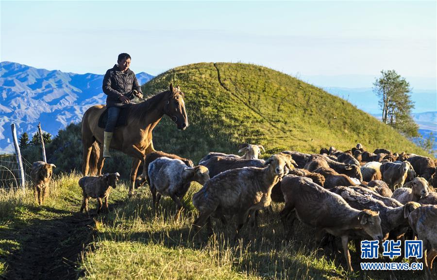 在新疆特克斯县也什克勒克村境内的夏牧场里,一名牧民帮村民代牧(7月2日摄)。 天山深处,许多牧民世世代代迁徙游牧,居无定所,生活贫困。随着当地脱贫攻坚事业的推进,集中放牧、现代化养殖、外出务工……牧民逐步实现多元化就业,天山深处的村庄迎来绚丽彩虹。 新华社记者 王菲 摄