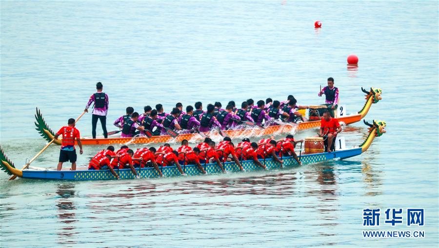 9月27日,参赛龙舟在比赛中。 9月26日至27日,一场龙舟争霸赛在三峡库区湖北省秭归县徐家冲港湾举行,来自湖北、广东、福建等地的12支代表队参加了角逐。 新华社发(王罡 摄)