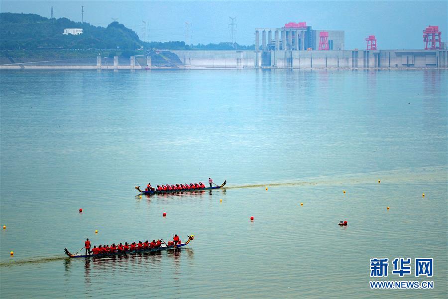 9月27日,参赛龙舟在比赛中。 9月26日至27日,一场龙舟争霸赛在三峡库区湖北省秭归县徐家冲港湾举行,来自湖北、广东、福建等地的12支代表队参加了角逐。 新华社发(王罡 摄)