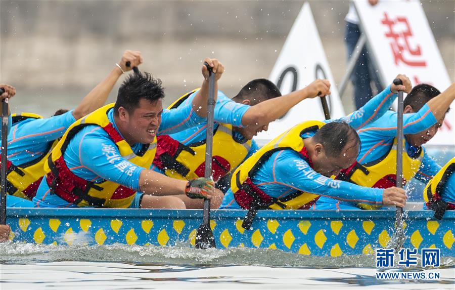9月27日,参赛龙舟在比赛中。 9月26日至27日,一场龙舟争霸赛在三峡库区湖北省秭归县徐家冲港湾举行,来自湖北、广东、福建等地的12支代表队参加了角逐。 新华社发(向红梅 摄)