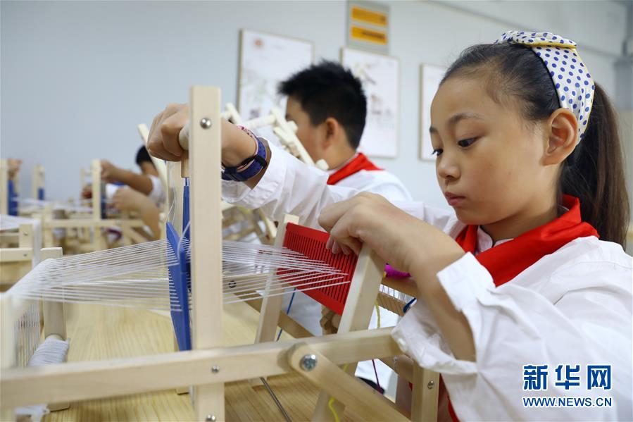 9月27日,淮北市第一实验小学的学生在农工坊体验传统织布。 近年来,安徽省淮北市第一实验小学在教育创新中推行科学、技术、工程和数学等多学科融合的综合教育,在校园建立农工坊、木工坊、科学探究室和数学实验室等。学校聘请专业老师指导授课,学生可结合自身兴趣爱好,自主选择参加各类手工体验活动,在快乐体验中激发创造力,提升综合素养。 新华社发(万善朝 摄)