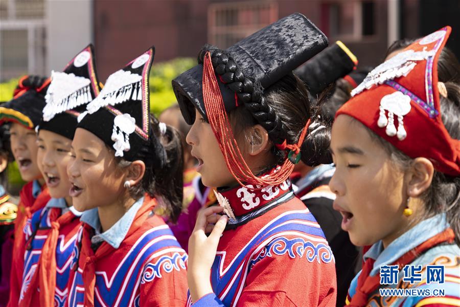 9月28日,在四川省喜德县瓦尔学校,瓦尔童声合唱团的同学们在表演合唱。 喜德县瓦尔学校位于四川省凉山彝族自治州喜德县,是一所以艺体教育见长的学校。学校2019年1月成立瓦尔童声合唱团,团员都是来自大山的彝族孩子。 新华社记者 李梦馨 摄