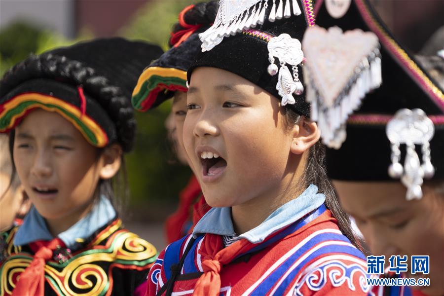 9月28日,在四川省喜德县瓦尔学校,瓦尔童声合唱团的同学们在表演合唱。 喜德县瓦尔学校位于四川省凉山彝族自治州喜德县,是一所以艺体教育见长的学校。学校2019年1月成立瓦尔童声合唱团,团员都是来自大山的彝族孩子。 新华社记者 李梦馨 摄