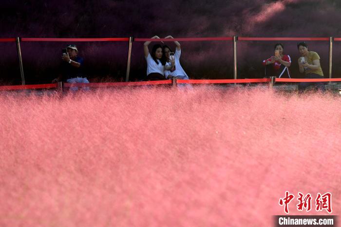 图为福州牛冈山公园粉黛乱子草花海吸引游客“打卡”。 吕明 摄