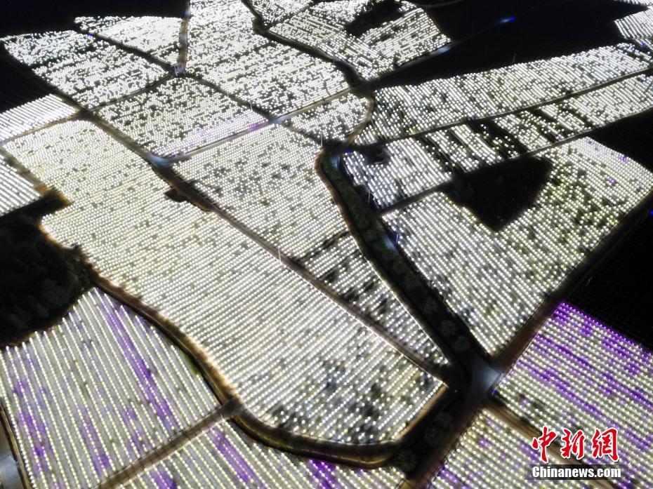 10月10日晚,航拍广西南宁市隆安县金福火龙果基地植物补光灯阵。夜幕降临,火龙果基地50万盏植物补光灯争相闪耀,宛如散落大地的星辰。火龙果基地因此成为游客的“网红打卡地”。 近年来,隆安县火龙果种植面积超过7.2万亩,当地多个大中型火龙果种植基地通过引入灯光补给系统,给生长期的火龙果进行补光,提高火龙果的产量。中新社记者 蒋雪林 摄