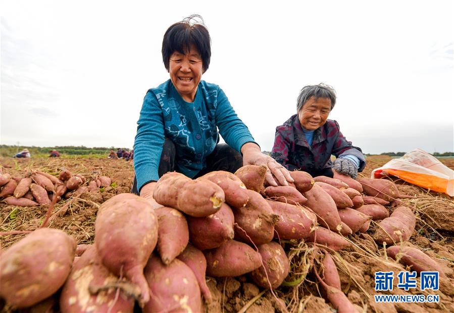 10月12日,河北省邯郸市邯山区河沙镇裴庄村农户在收获红薯。 近年来,河北省邯郸市邯山区积极调整农业产业结构,结合当地土壤和气候特点,因地制宜发展红薯种植,采取“龙头企业+合作社+农户”经营管理模式,促进农民增收。 新华社记者 王晓 摄