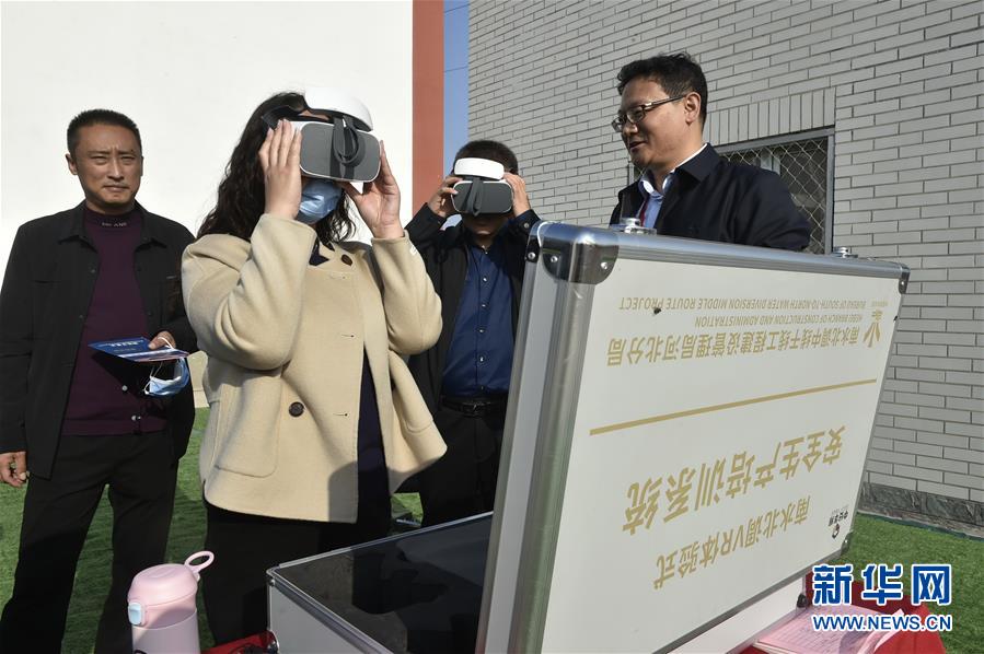10月16日,在南水北调中线工程开放日邯郸管理处沁河倒虹吸节制闸活动现场,受邀代表体验“南水北调VR体验式安全生产培训系统”。 当日,以“智慧中线,安全调水”为主题的南水北调中线工程2020年度开放日活动拉开序幕。南水北调中线建管局邀请社会各界代表实地探访,深入通水运行一线,了解中线工程的现代化运行管理,探访如何运用大数据、互联网、物联网等科技手段保障调水安全。 新华社记者 鲁鹏 摄