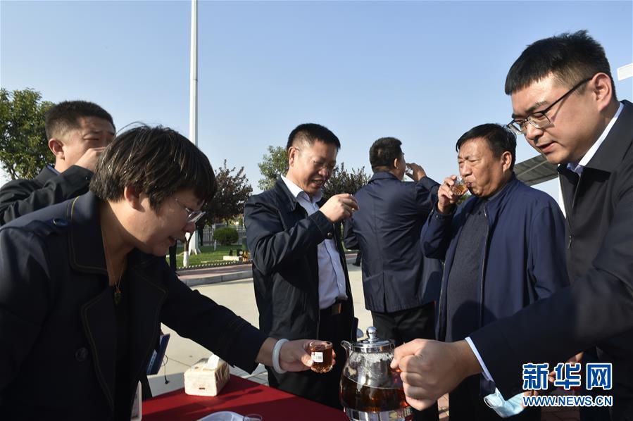 10月16日,在南水北调中线工程开放日邯郸管理处沁河倒虹吸节制闸活动现场,受邀代表品尝用输水渠道中的“南水”冲泡的茶。 当日,以“智慧中线,安全调水”为主题的南水北调中线工程2020年度开放日活动拉开序幕。南水北调中线建管局邀请社会各界代表实地探访,深入通水运行一线,了解中线工程的现代化运行管理,探访如何运用大数据、互联网、物联网等科技手段保障调水安全。 新华社记者 鲁鹏 摄