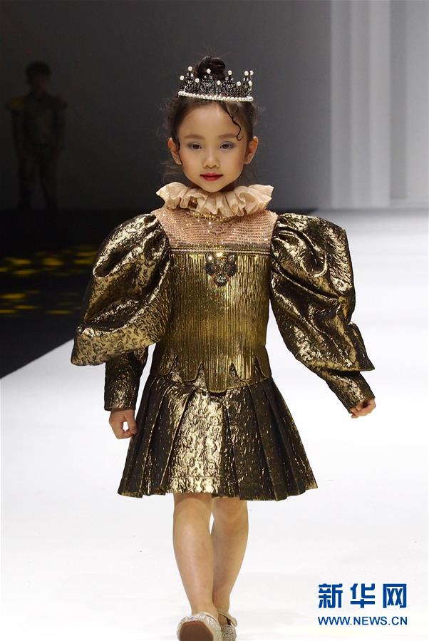 10月16日晚,模特在演绎FUNNY DREAM童装礼服。 当日,2021春夏上海时装周在静安800秀场举行FUNNY DREAM童装发布会,推出由中国十佳童装设计师陈翔飞全新立体剪裁和版型结构的童装礼服。 新华社记者 任珑 摄