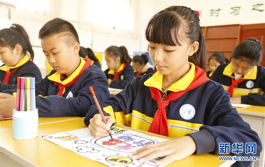 10月16日,河北省邢台市南园路小学学生在绘制珍惜粮食主题手抄报。 当日是世界粮食日,河北省邢台市南园路小学开展“珍惜粮食、从我做起”主题教育活动,通过认识粮食、了解各种粮食的生长知识及制作手抄报等方式,培养学生们珍惜粮食的意识和节约粮食的习惯。 新华社发(张驰 摄)