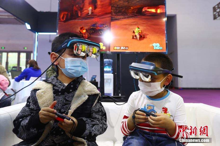 10月18日,备受行业瞩目的“2020VR/AR产品和应用展览会”在南昌绿地国际博览中心启幕。作为中国乃至全球虚拟现实行业科技创新发展的风向标,本届展会以“融合创新,开启VR新视界”为主题,聚焦行业发展趋势,锁定行业发展热点,展示最新技术成果,汇聚行业知名企业,成为虚拟现实行业饕餮盛会。图为两位孩童体验VR虚拟现实游戏。中新社记者 刘占昆 摄