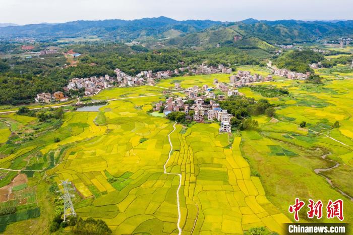 金黄稻田与新农村辉映成景。 何华文 摄