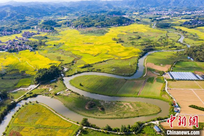金黄稻田与弯曲的河流构成美如图画。 何华文 摄