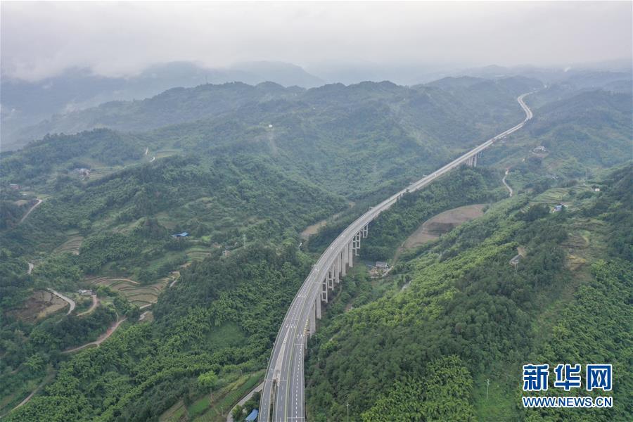 这是10月20日拍摄的重庆南两高速(无人机照片)。 当日,由贵州桥梁建设集团承建的重庆市南川区至两江新区高速公路(简称“南两高速”)正式通车(五台收费站以北约2.4公里暂不开通)。南两高速于2016年底开工建设,全长约77公里,途经南川、涪陵、巴南、渝北四个区县,是重庆市“交通建设三年行动计划”重要项目。 新华社记者 黄伟 摄