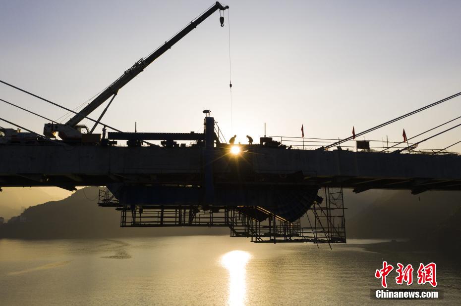 随着最后一盘混凝土浇筑工序完成,童庄河大桥主梁中跨顺利合龙。 聂爽 摄
