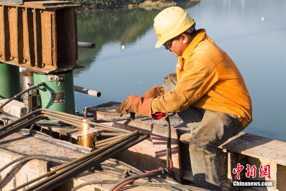工人进行跨龙口锁定焊接。 聂爽 摄