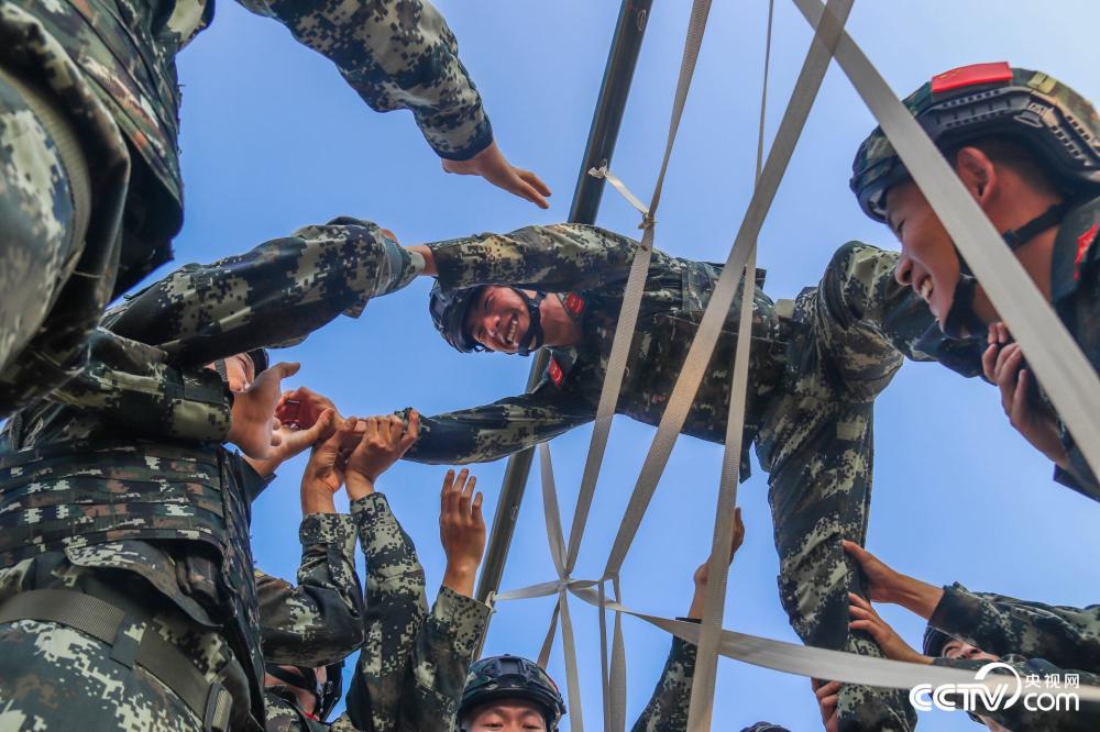 图为训练间隙,武警官兵开展趣味心理行为训练。(周子越 果志远 摄影报道)