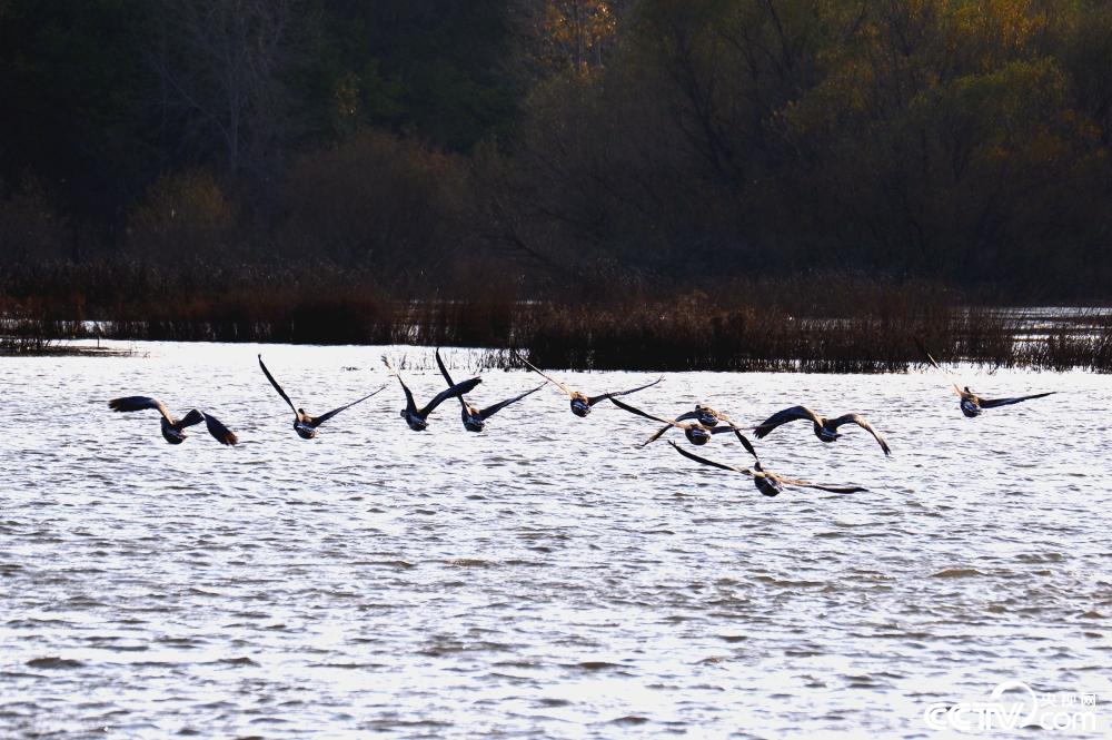 央视网消息:10月20日,成群迁徙的大雁在哈尔滨太阳岛湿地或觅食游弋或翩翩起舞,构成秋日北国冰城一道自然和谐的生态靓丽风景。(吴胡荼 摄)
