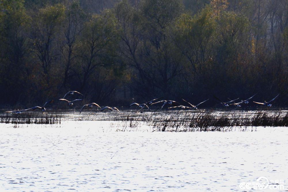 央视网消息:10月20日,成群迁徙的大雁在哈尔滨太阳岛湿地或觅食游弋或翩翩起舞,构成秋日北国冰城一道自然和谐的生态靓丽风景。(吴胡荼 摄)