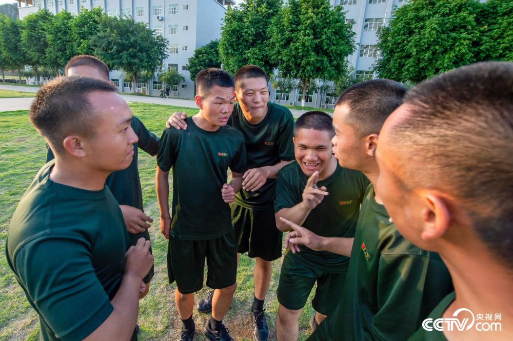 图为开展游戏前,新同志们在商量“战术”。(任旺、孙立志 摄影报道)