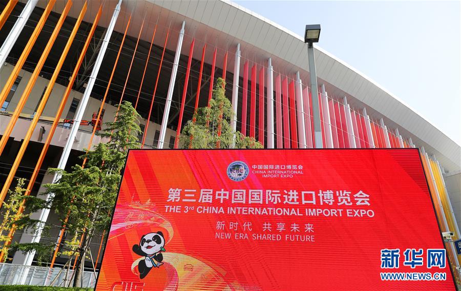 国家会展中心(上海)道路边设置的广告牌打出第三届进博会主题内容(10月23日摄)。 第三届中国国际进口博览会即将于11月5日在国家会展中心(上海)拉开帷幕。目前,各项准备工作正在有条不紊地进行。 新华社记者 方喆 摄